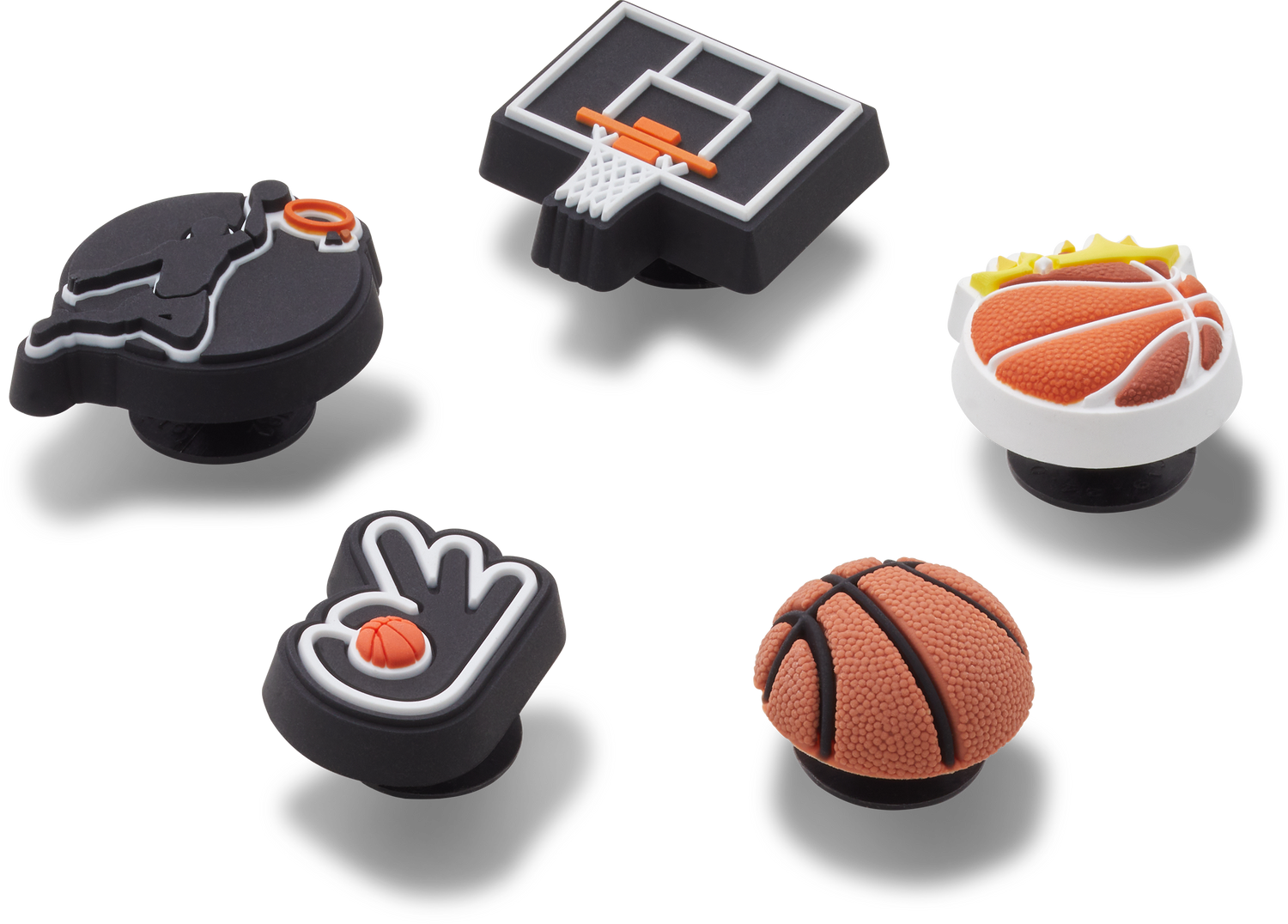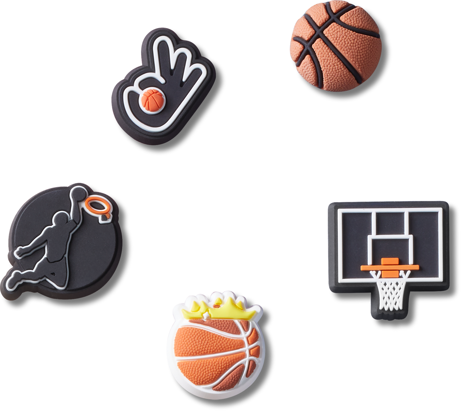 "Pop some personality into your shoes with these Basketball Team 5 Pack Jibbitz™ charms. They’re the perfect addition to your favorite pairs of clogs, slides, and more. "