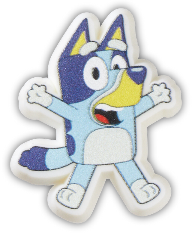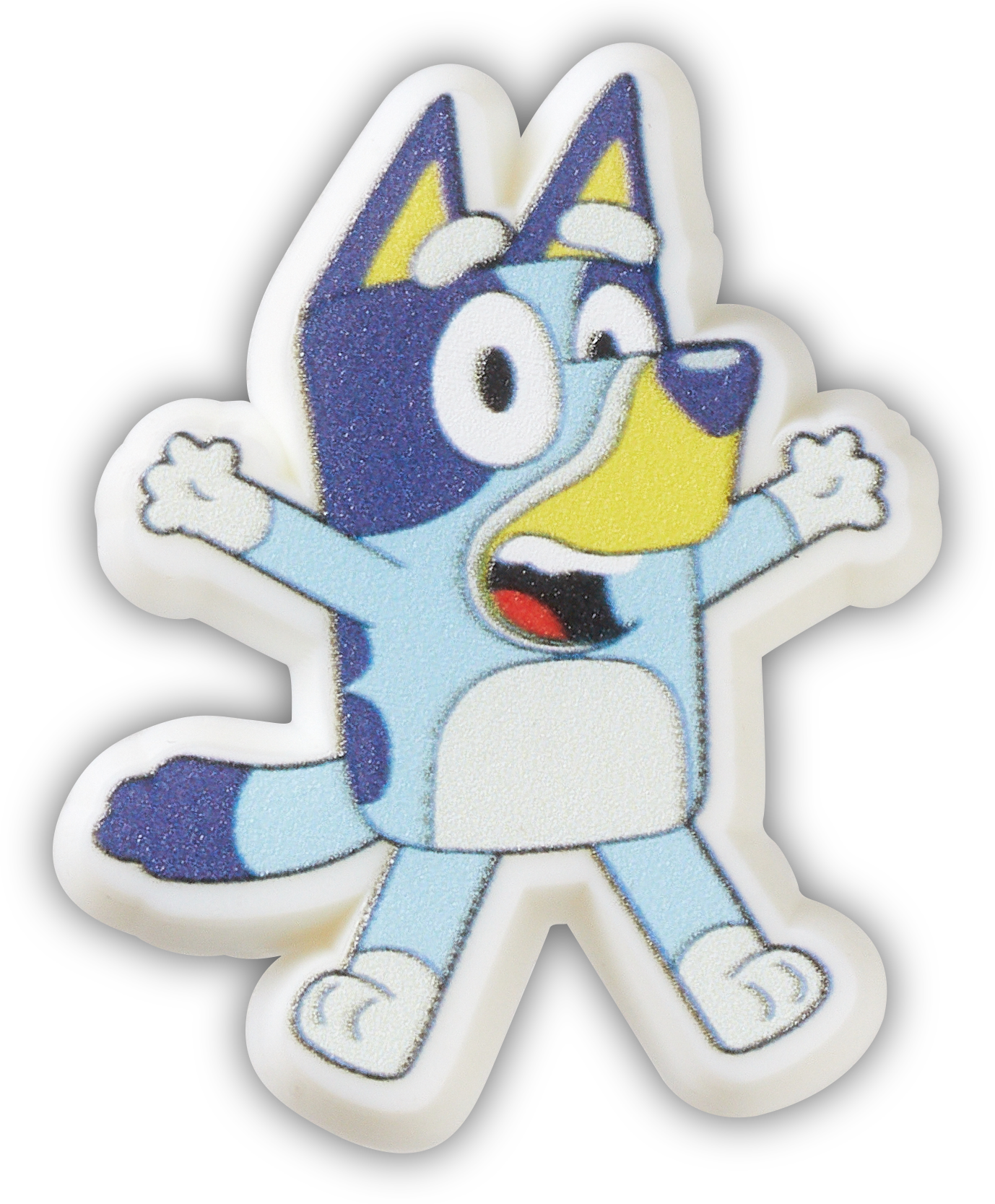 "Pop some personality into your shoes with this Bluey Jibbitz™ charm. It's the perfect addition to your favorite pairs of clogs, slides, and more. Not a toy. Not intended for children under 3 years of age. "
