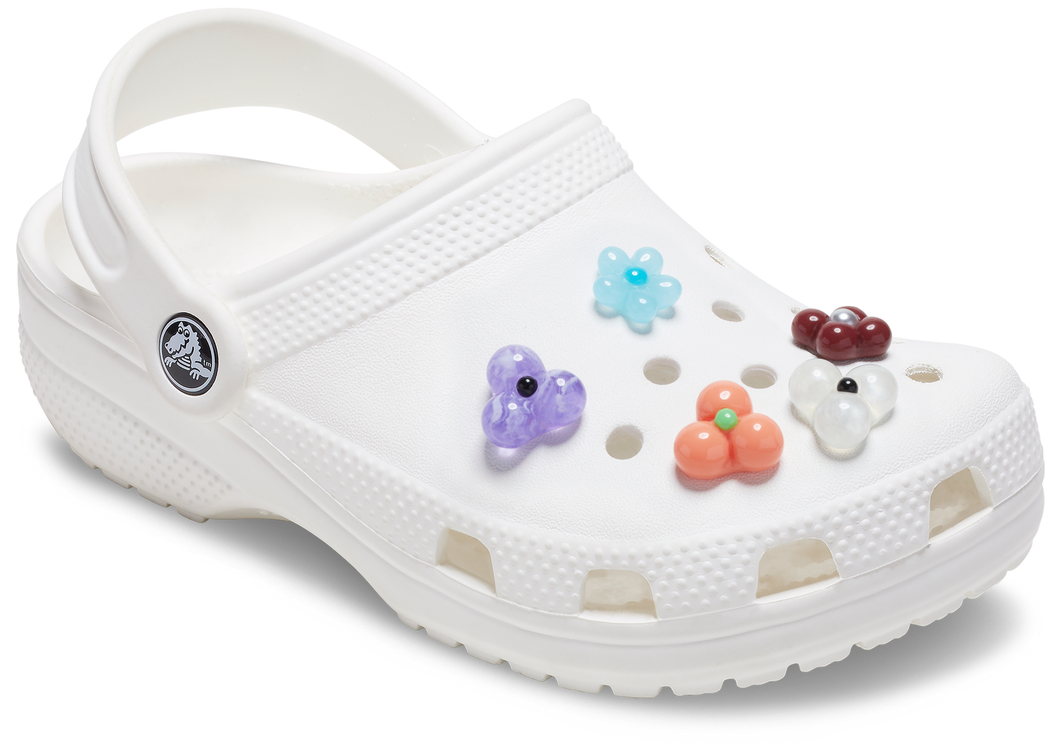 "Jibbitz™ charms are fun little images, letters, sayings, characters, and bits of pop culture mounted on a post to pop into the holes of your Crocs Classics. With 13 holes on each Crocs Classic, you can sport up to 26 at a time. "