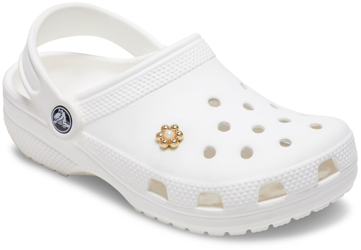 "Pop some personality into your shoes with this Gold And Pearl Tiny Flower Jibbitzª charm. It's the perfect addition to your favorite pairs of clogs, slides, and more. Not a toy. Not intended for children under 3 years of age. "
