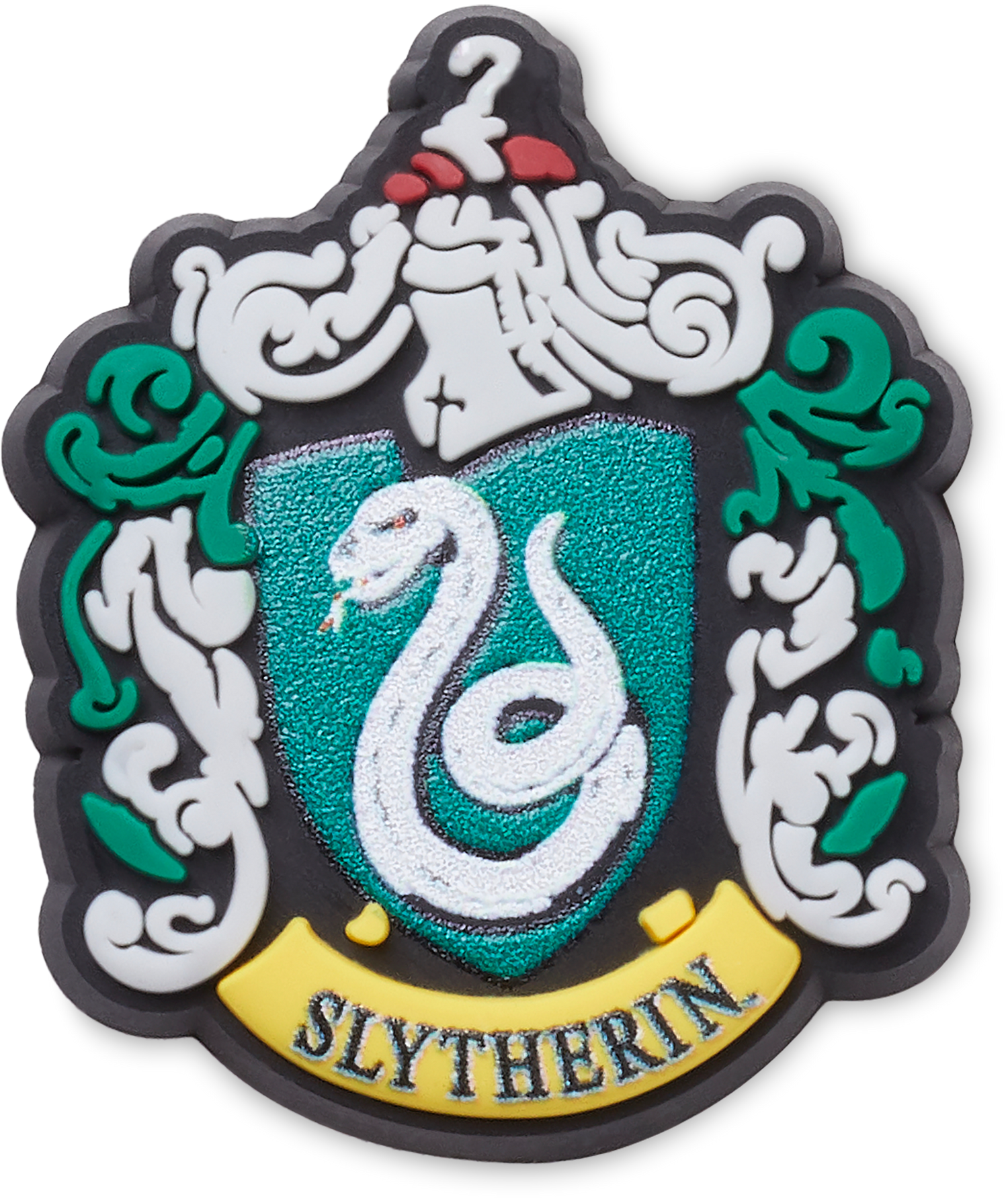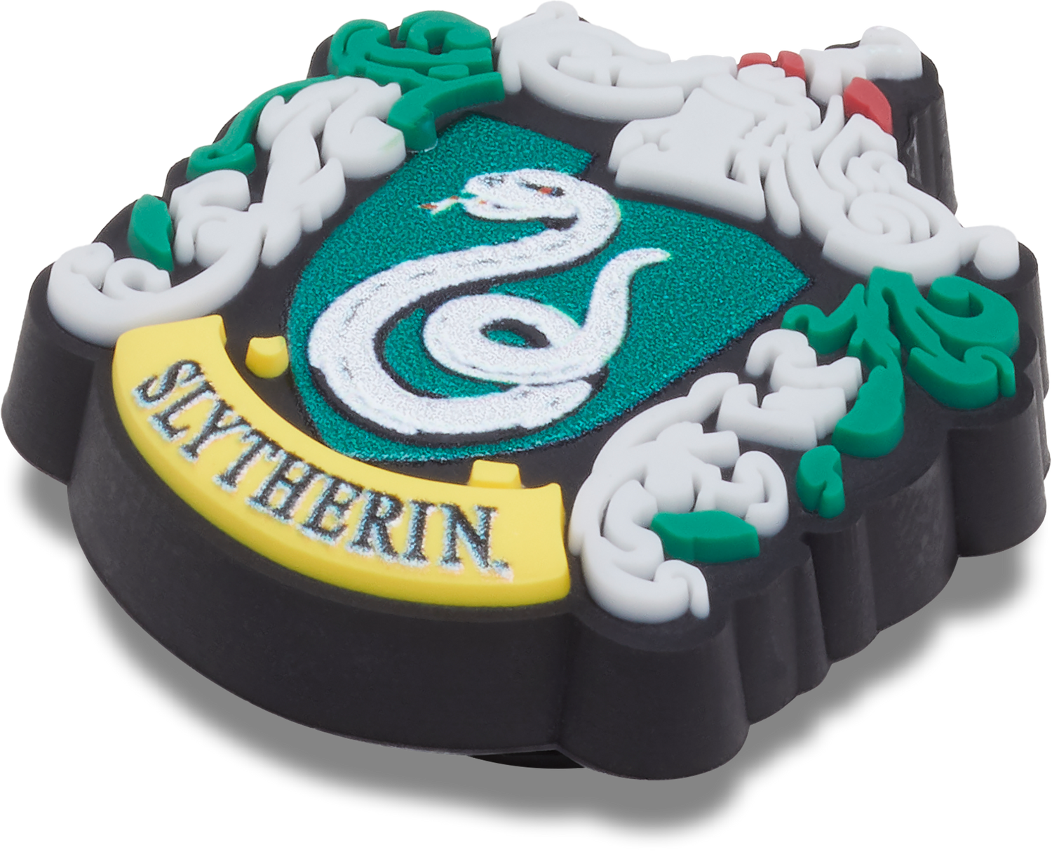 "Pop some personality into your shoes with this Harry Potter Slytherin Jibbitz™ charm. It's the perfect addition to your favorite pairs of clogs, slides, and more. Not a toy. Not intended for children under 3 years of age. "