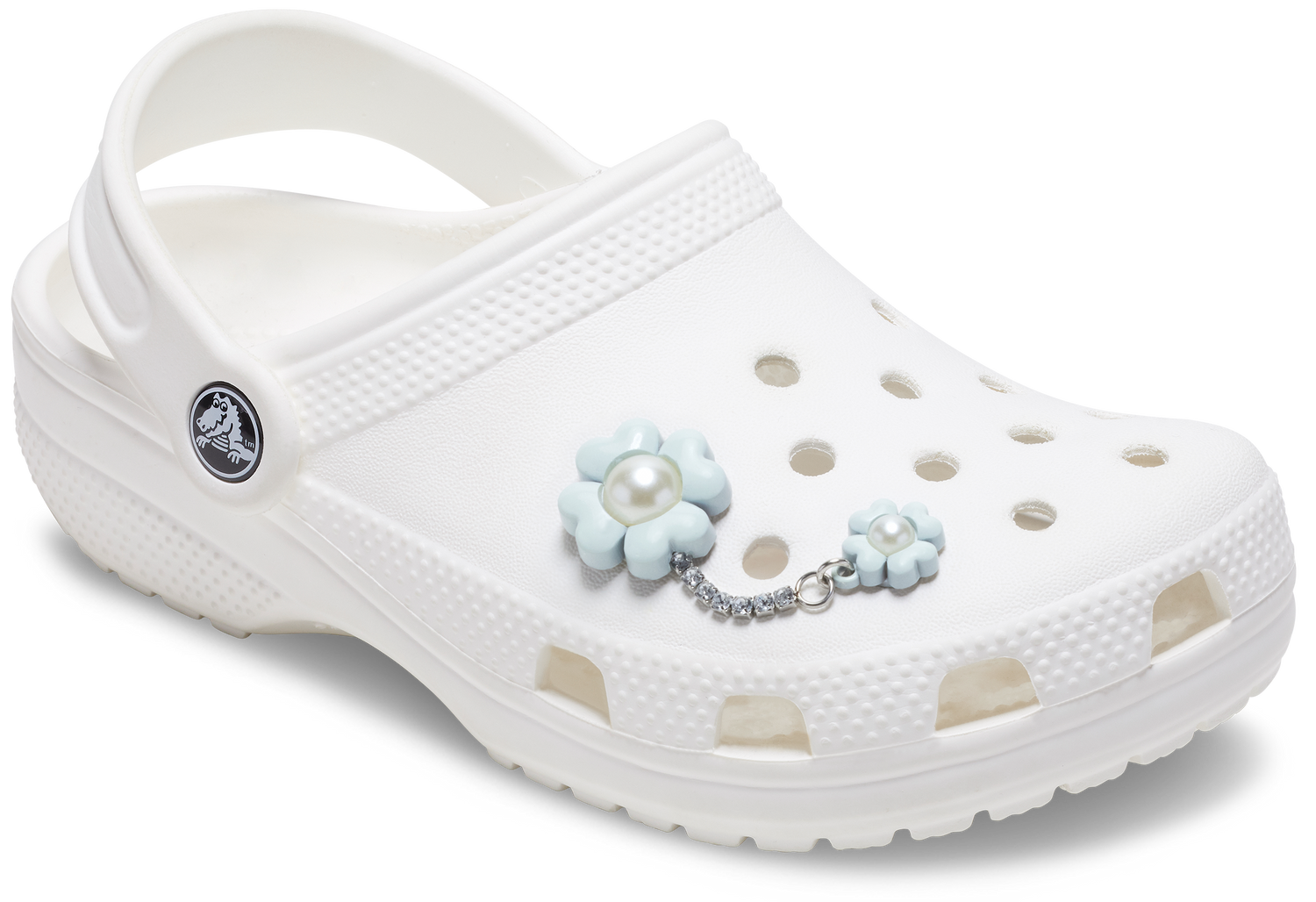 "Jibbitz™ charms are fun little images, letters, sayings, characters, and bits of pop culture mounted on a post to pop into the holes of your Crocs Classics. With 13 holes on each Crocs Classic, you can sport up to 26 at a time. "