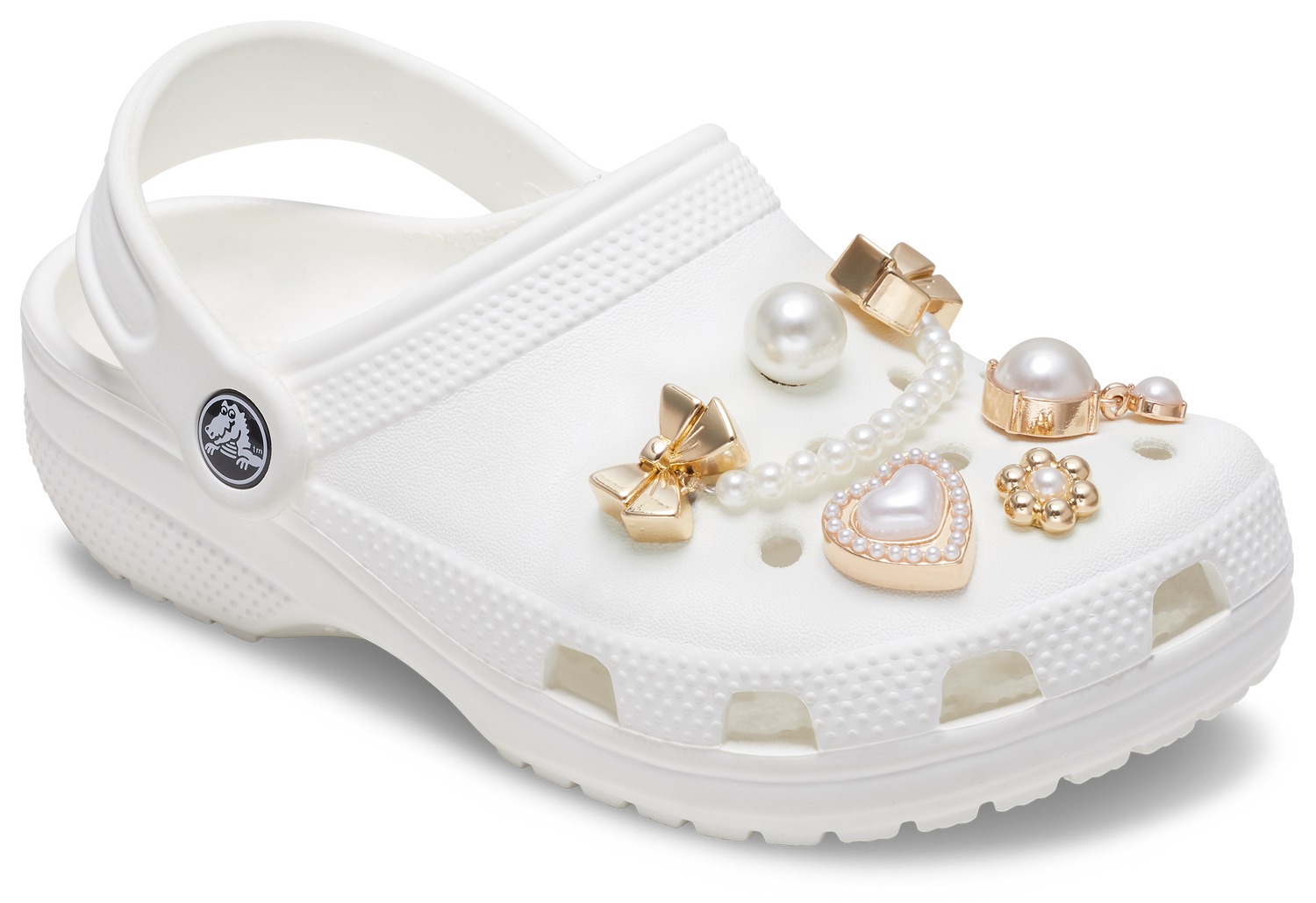 "Jibbitz™ charms are fun little images, letters, sayings, characters, and bits of pop culture mounted on a post to pop into the holes of your Crocs Classics. With 13 holes on each Crocs Classic, you can sport up to 26 at a time. "