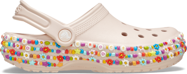 This fun version of the Classic Clog features a band with secured strands of beads, similar to friendship bracelets. The unique beaded band helps kids show off their creative spirit, and Croslite™ foam construction keeps them light and easy to wear. Grounded in comfort, spiked with personality.