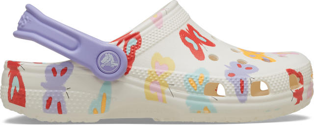 "Little ones will love the stylish butterfly print graphic and Iconic Crocs Comfort in the Kids' Classic Butterfly Clog. The fun animal print gives them great style, and Croslite™ foam construction keeps them light and easy to wear. You can also enjoy your own pair, so you can match your little one for a fun full family moment. Grounded in comfort, spiked with personality. "