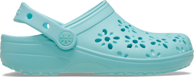 "The Classic Clog with a fresh, feminine twist! This new evolution of our clog features floral-inspired cutouts that provide a joyful, fun look, plus matching floral rivets that unify the design. These still feature the fully-molded lightweight construction and iconic comfort of the original, and can still be personalized with Jibbitz™ charms. It’s the irreverent, go-to comfort shoe that you and your kids love — now with a fun, floral update! "