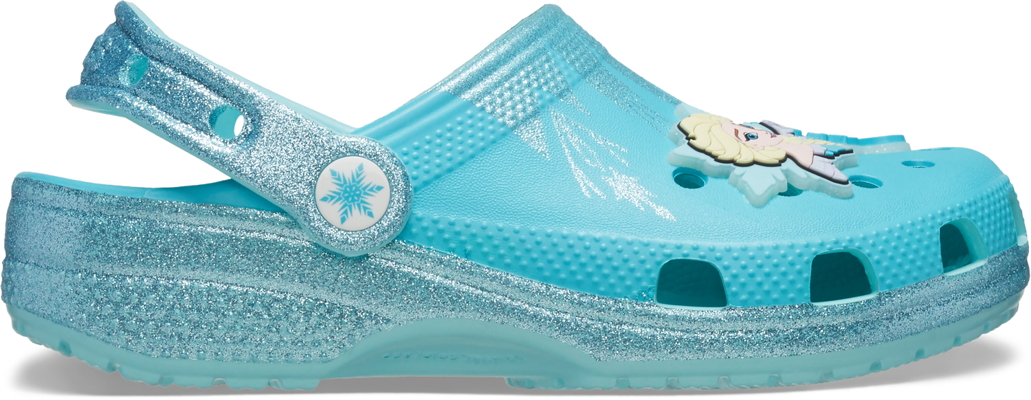 "Encourage your little ones to discover their magical gifts in the kids’ Frozen Elsa Classic Clog. From the school hallways, to the playground, all the way to the North Mountain–Iconic Crocs Comfort™ means they’re prepared for adventures in any season. Icy-themed Jibbitz™ charms add sparkle and uniqueness to every step. Lightweight feel, breathability, and easy on/off means nothing is in their way. SPECIFICATION Based on the Disney character, Elsa Pivoting heel straps for a more secure fit Iconic Crocs Comfort™: Lightweight. Flexible. 360-degree comfort. Ventilation ports add breathability and help shed water and debris"
