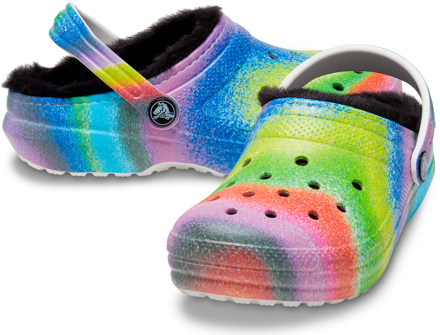 Everybody loves the comfort of the Kids’ Classic Clog — and this toasty lined version features a colorful spray dye print. The soft, fuzzy liner adds to the cushion and comfort, and the engaging print shows off your creative spirit. Choose between a spray dye print liner or spray dye print upper. Great as a slipper, yet very capable outdoors, too. Croslite™ foam construction keeps them light and easy to wear. The pivoting heel strap gives you a secure fit, or push it forward to just step in and go.