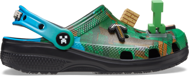 "Build your style one block...and Croc...at a time. In the Minecraft Classic Clog. Featuring an allover core print with exclusive Minecraft Jibbitz™ charms, they’ll have you ready to explore almost any terrain. Add a pair to your inventory. "