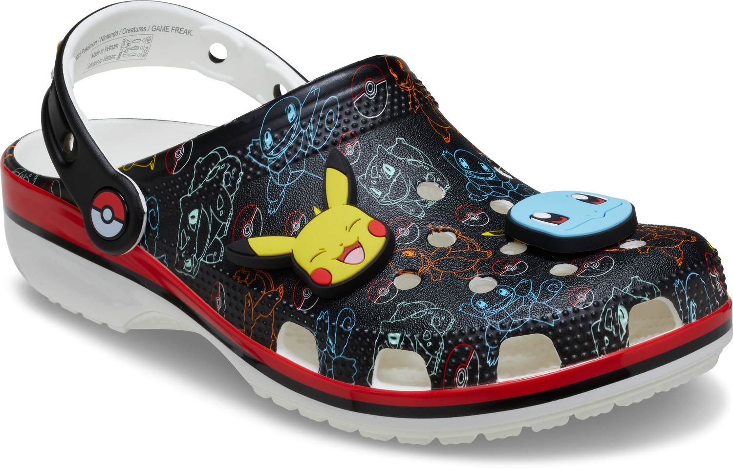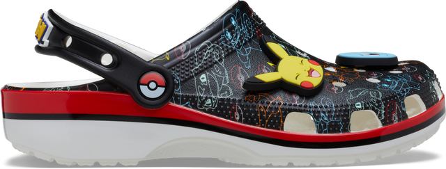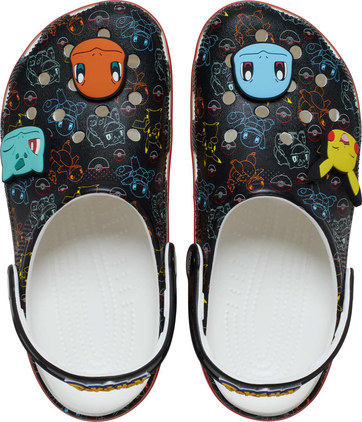 "Calling all Trainers! The Pokémon Classic Clog is a fan-favorite silhouette, printed with fan-favorite characters. And oversized Jibbitz™ charms level up the look even more! "