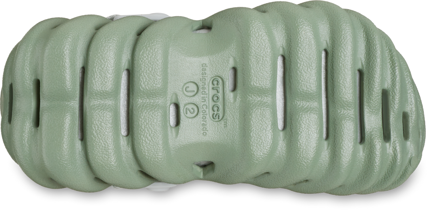 "The Echo Collection is for those who want comfort without compromising their look. This fully molded clog is anything but conformist, with bold sculpting and sport inspiration that keeps streetwear at its core. With Croslite™ construction and a LiteRide™ drop-in footbed, kids can stay comfortable while staying stylish in the Echo collection. Kids Echo Clog Details: Incredibly light and easy to wear Fully molded Croslite™ upper and foundation Water-friendly and buoyant; weighs only ounces Ventilation ports add breathability and help shed water Easy to clean and quick to dry Heel pad on back strap for extra comfort Customizable with Jibbitz™ charms Dual density support with Croslite™ sole and LiteRide™ Footbed"