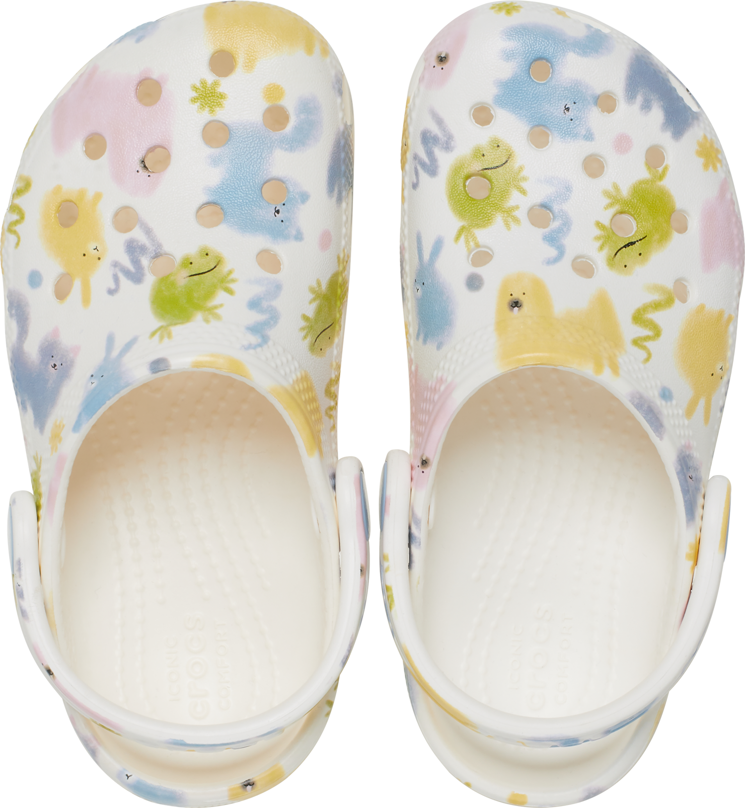 "Easy on, easy off! Just like the adult Classic, the kids’ version offers amazing comfort and support, thanks to the light, durable Croslite™ material and molded design. Kids can customize their Crocs™ clog however they like; ventilation holes accommodate Jibbitz™ brand charms. Toddler's I AM Dinosaur Classic Clog Detail: Pivoting heel straps for a more secure fit Easy to clean Customizable with Jibbitz™ charms Iconic Crocs Comfort™: Lightweight. Flexible. 360-degree comfort."
