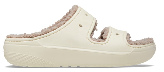 The new Classic Cozzzy Sandal features a soft, fuzzy liner, style-forward heightened outsoles and two upper straps that offer enhanced foot security. Seven holes on each sandal allow for maximum personalization with Jibbitz™ charms, while Croslite™ foam construction keeps them light and easy to wear.