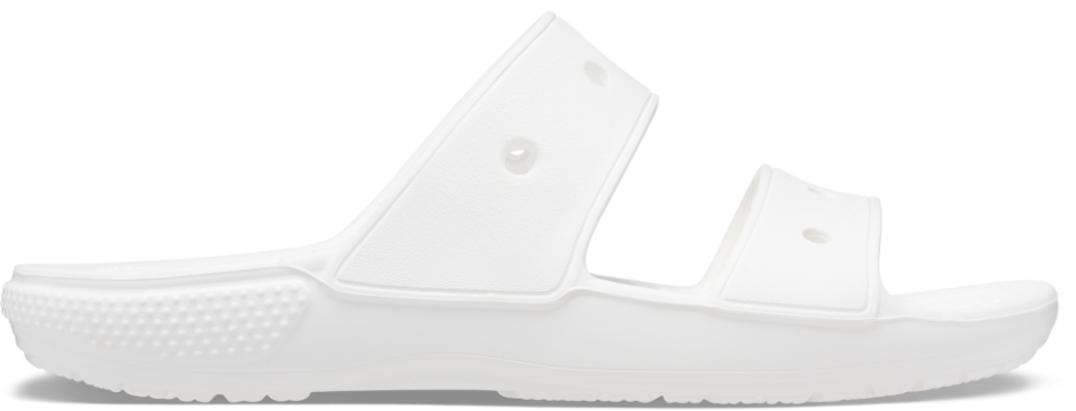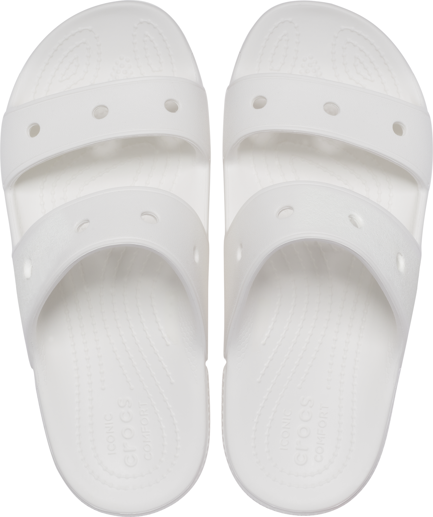 The look and feel of our comfortable Classic Clog and Crocs Slide, now in sandal form. Two upper straps offer even more comfort and foot security, and seven holes on each shoe allow you to personalize with Jibbitz™ charms. Well even get you started by including a Crocs logo charm. Original Croslite™ foam cushion will keep you supported from the beach to backyard gatherings and beyond.