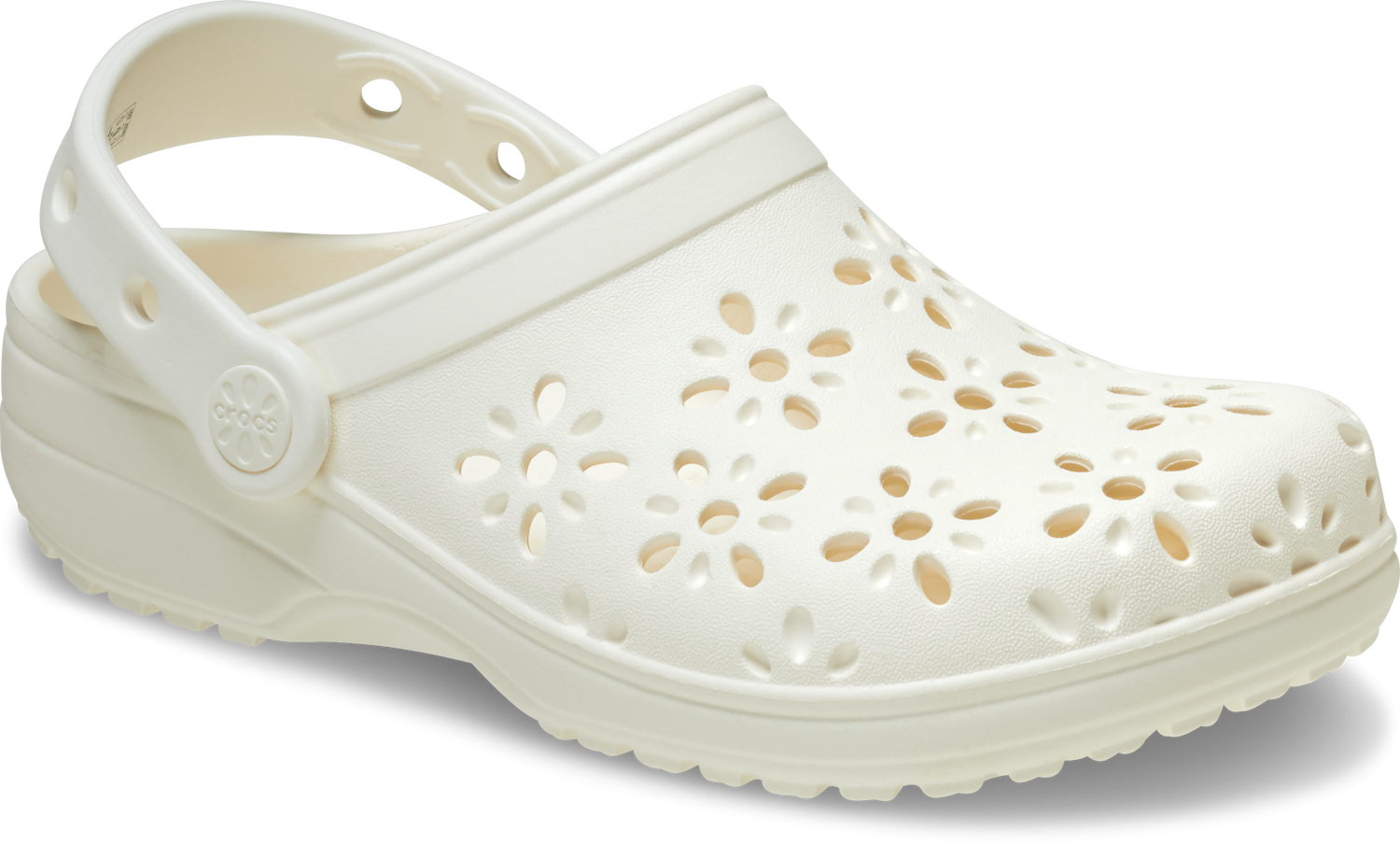 "Feminine floral style cutout. . Pivoting heel strap ensures a more secure fit . Extremely lightweight and fun to wear . Iconic Crocs Comfort™:Lightweight. Flexible. 360 degrees of comfort."