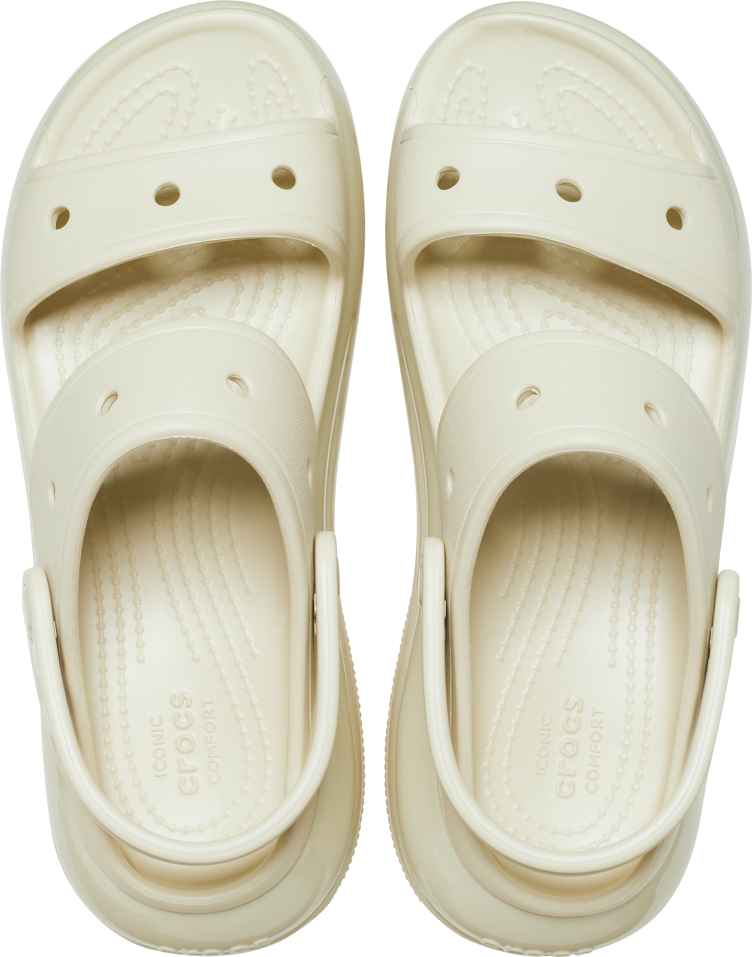 The look and feel of our Classic Mega Crush Clog is now available in sandal form. Introducing the Classic Mega Crush Sandal, featuring an enhanced rubber tread, updated detailing around the outsole and a platform ready to take any outfit to the next level. A two-strap upper and secure backstrap help ensure a secure fit, while boasting holes for personalization with Jibbitz™ charms. Are you ready for your new crush?