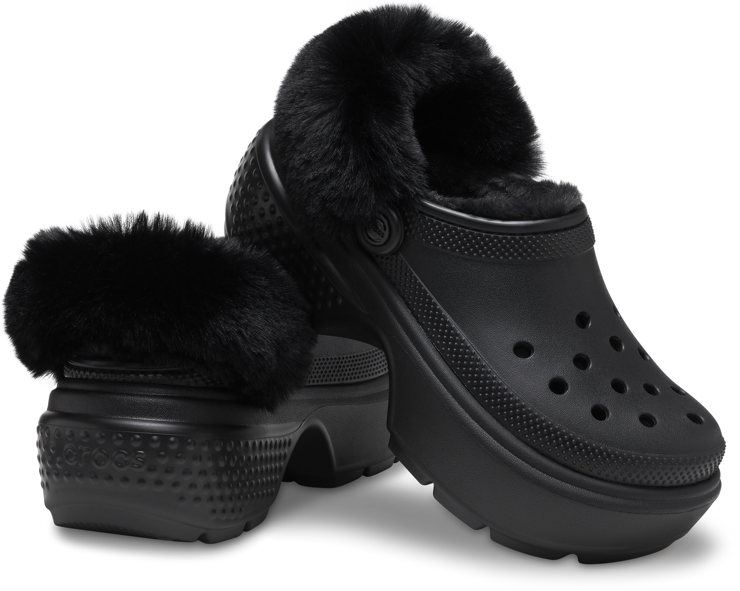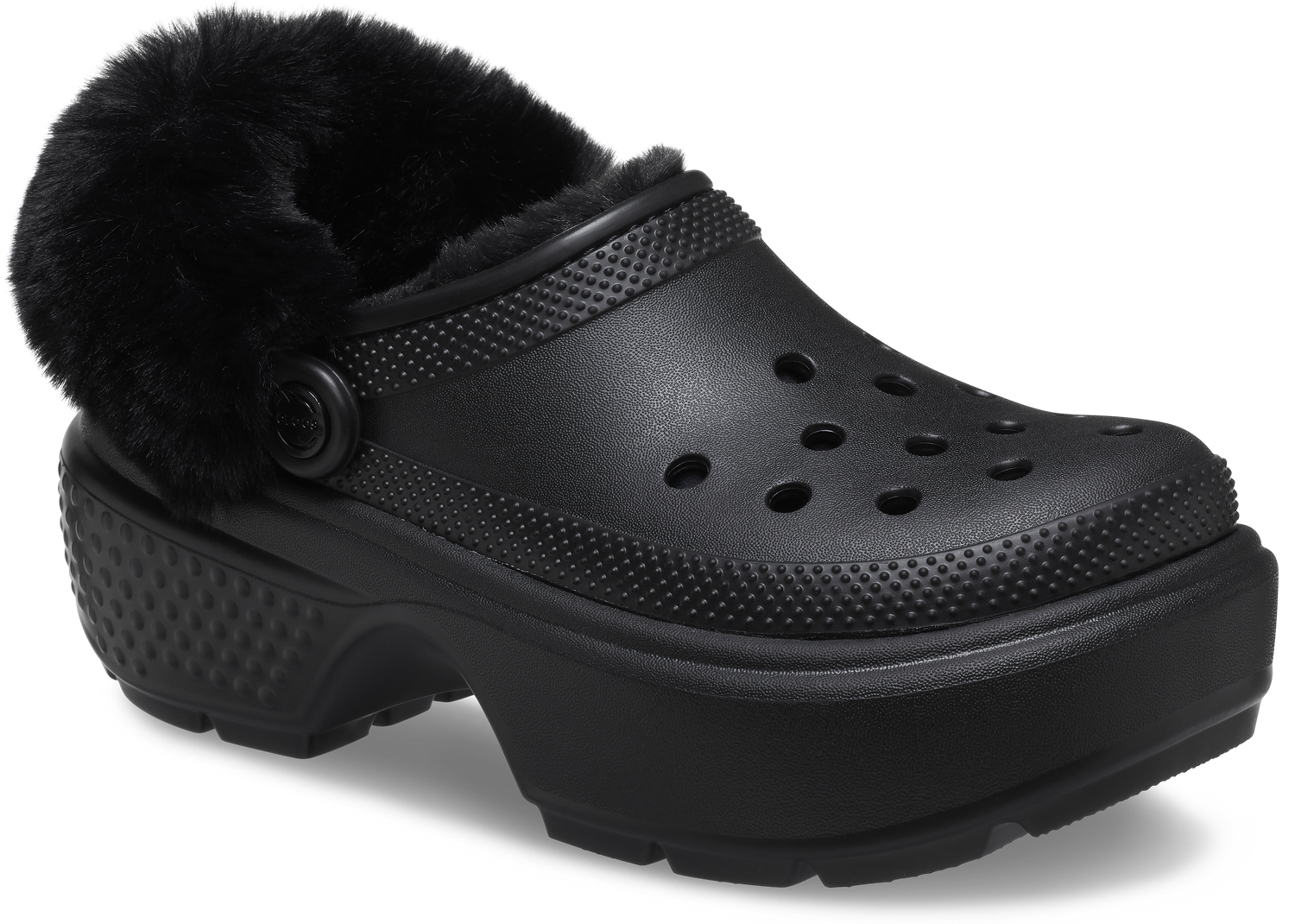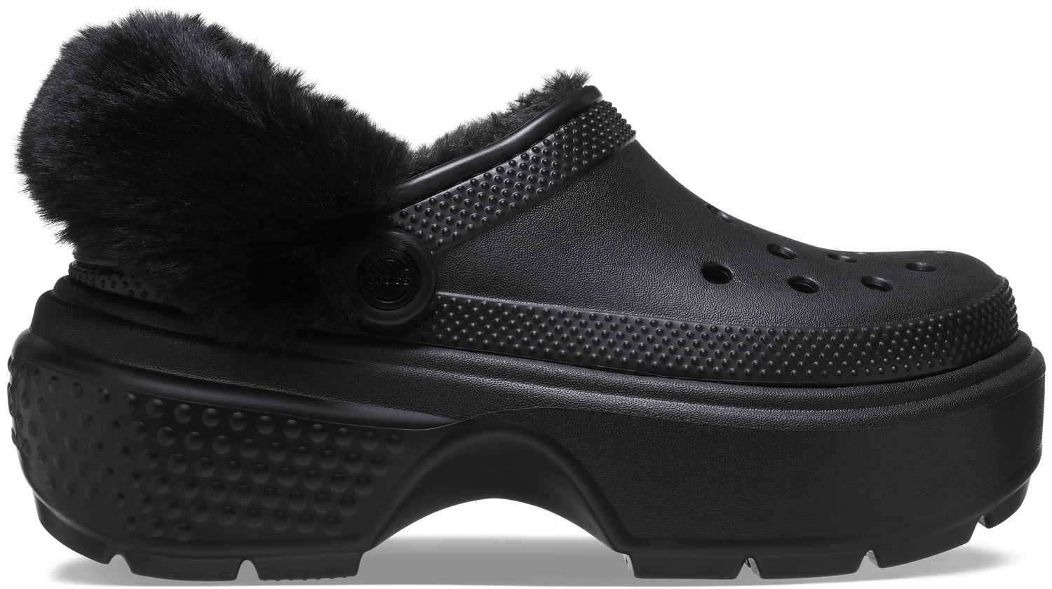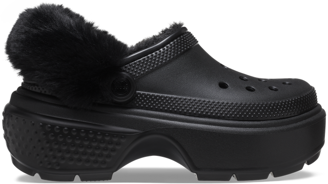 "Tread heavily and let the ground know who’s boss. The Stomp Collection features stylish exaggerated soles that are excessively chunky and daring while still feeling light on your feet. With dramatic proportions that elevate its inherent boldness and all of the charms of personalization, the Stomp Collection lets you stomp to your own eye-catching beat. Stomp Lined Clog Details: 2.2-inch | 5.6cm heel height Lightweight construction Exaggerated lug sole Fully lined interior Fuzz-wrapped pivotable backstrap Molded Croslite™ upper Customizable with Jibbitz™ charms Dual Crocs Comfort™: Blissfully supportive. Soft. Cradling comfort."