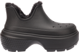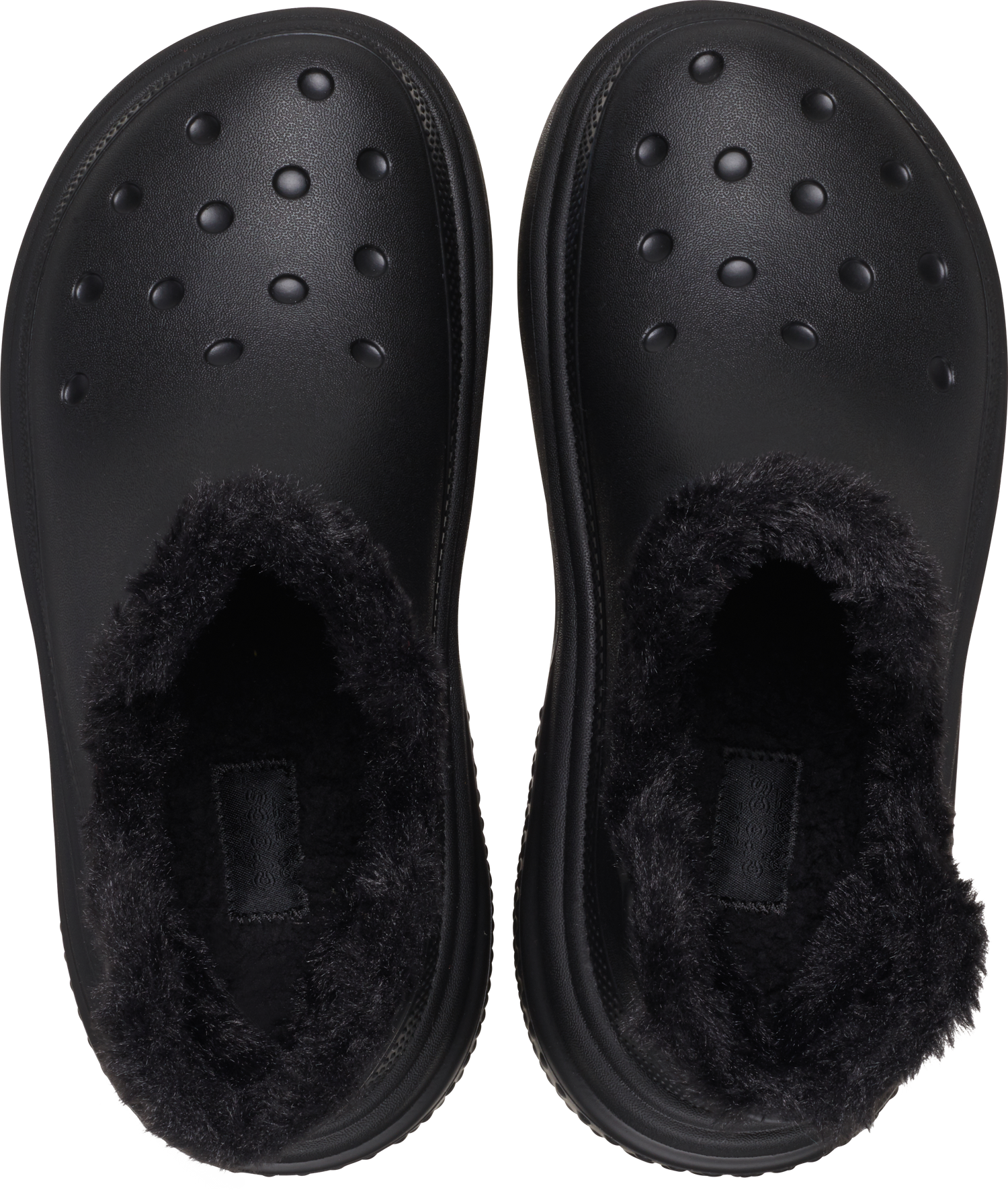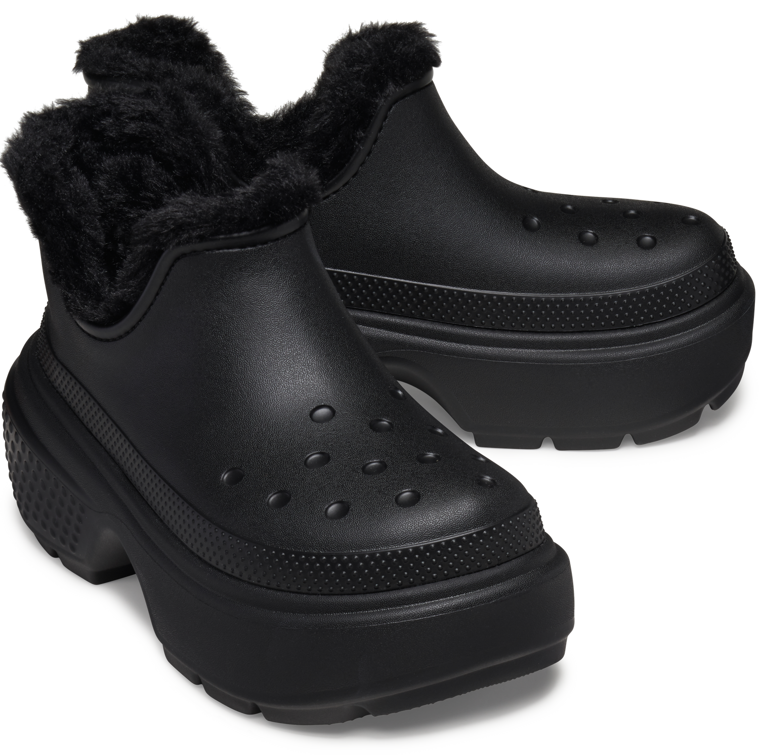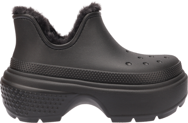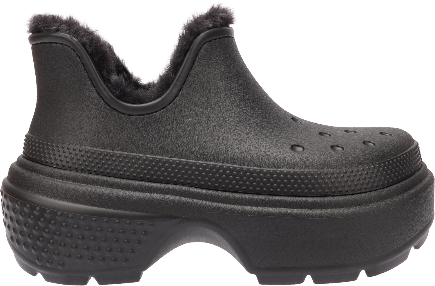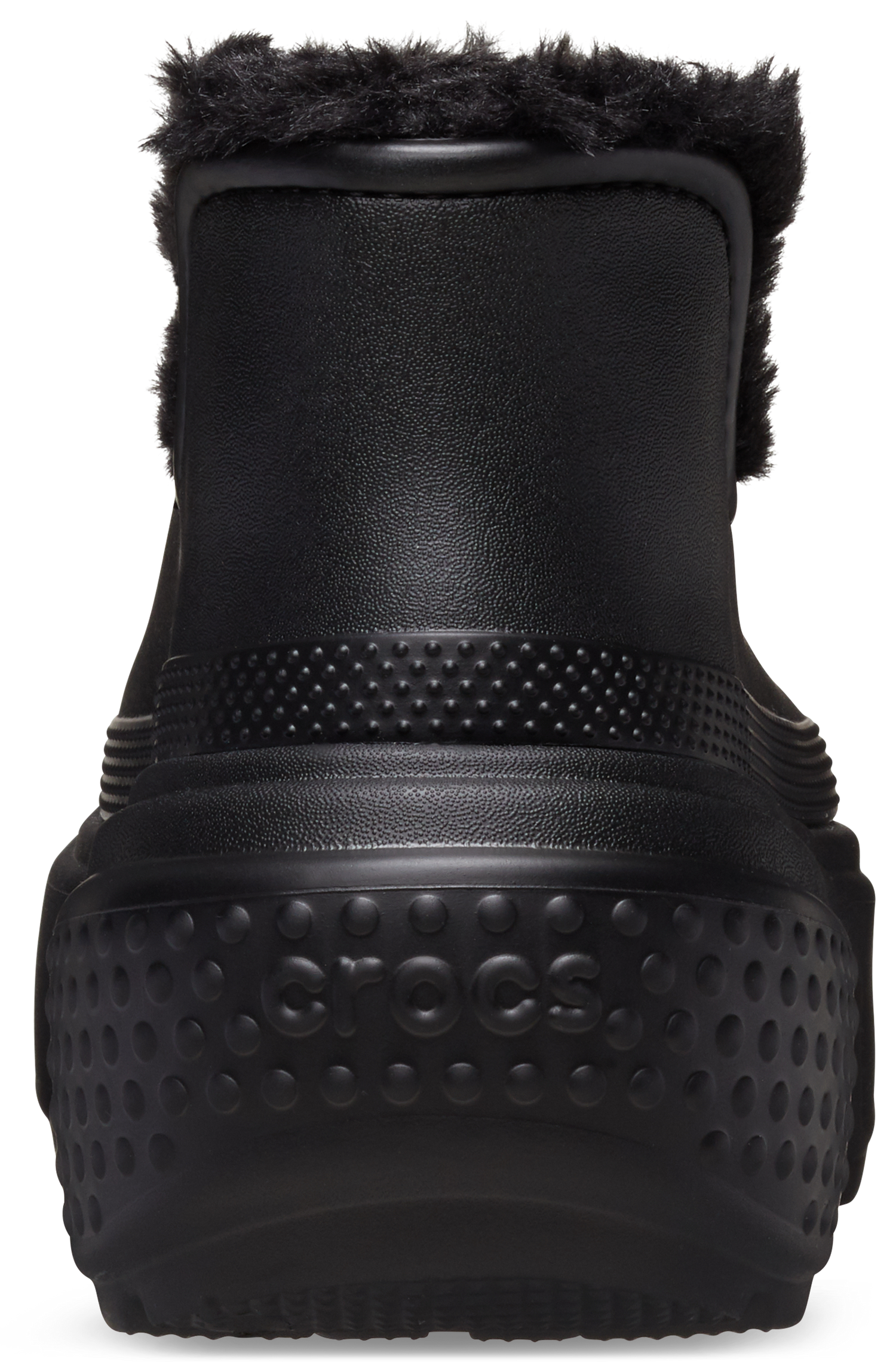 "Tread heavily and let the ground know who’s boss. The Stomp Collection features stylish exaggerated soles that are excessively chunky and daring while still feeling light on your feet. With dramatic proportions that elevate its inherent boldness, the Stomp Collection lets you stomp to your own eye-catching beat. The Stomp Shorty Boot features a warm, fuzzy lining and short ankle height, making this an easy to wear boot with bold style. Designed to mimic the style of ski and snowboard goggles High-shine iridescent finish on the backstrap and sole Bold Crocs logo on the sole Incredibly light and fun to wear Ventilation ports add breathability and help shed water and debris Easy to clean and quick to dry Pivoting heel straps for a more secure fit Customizable with Jibbitz™ charms Iconic Crocs Comfort™: Lightweight. Flexible. 360-degree comfort."