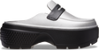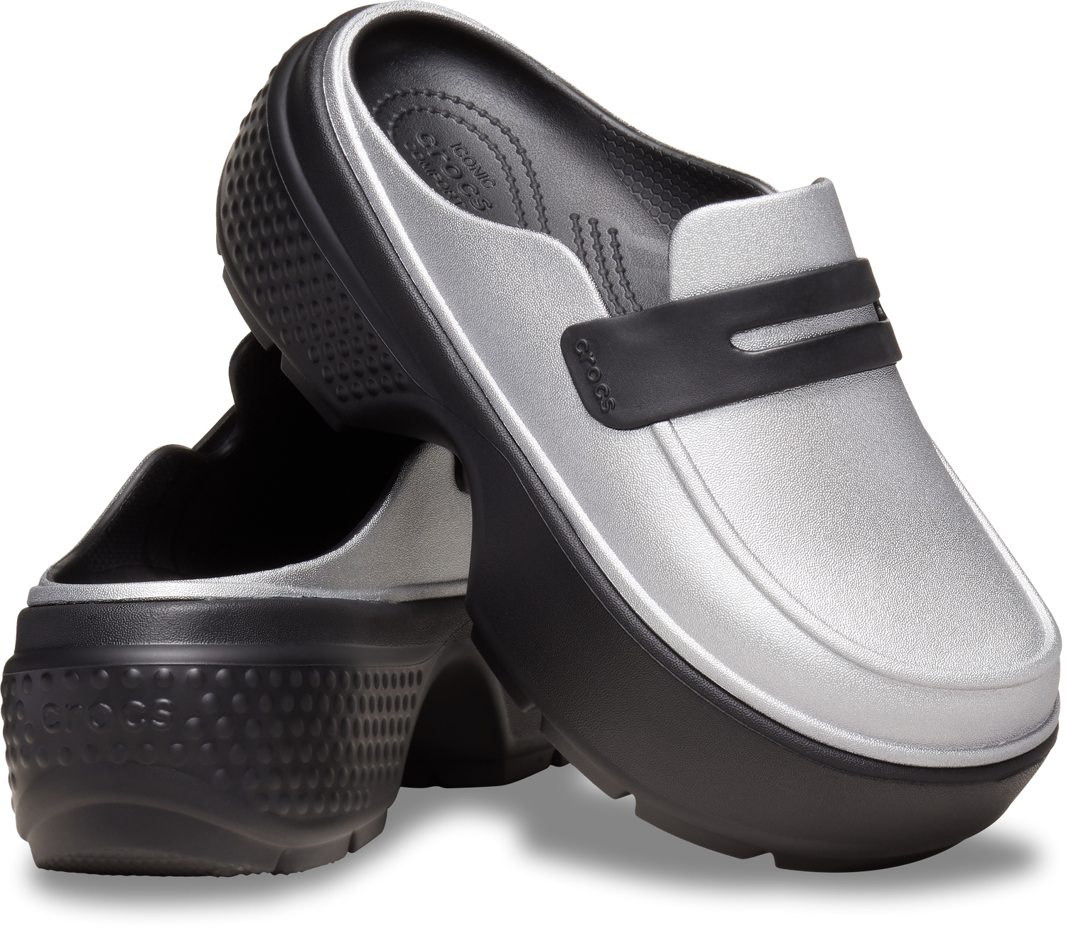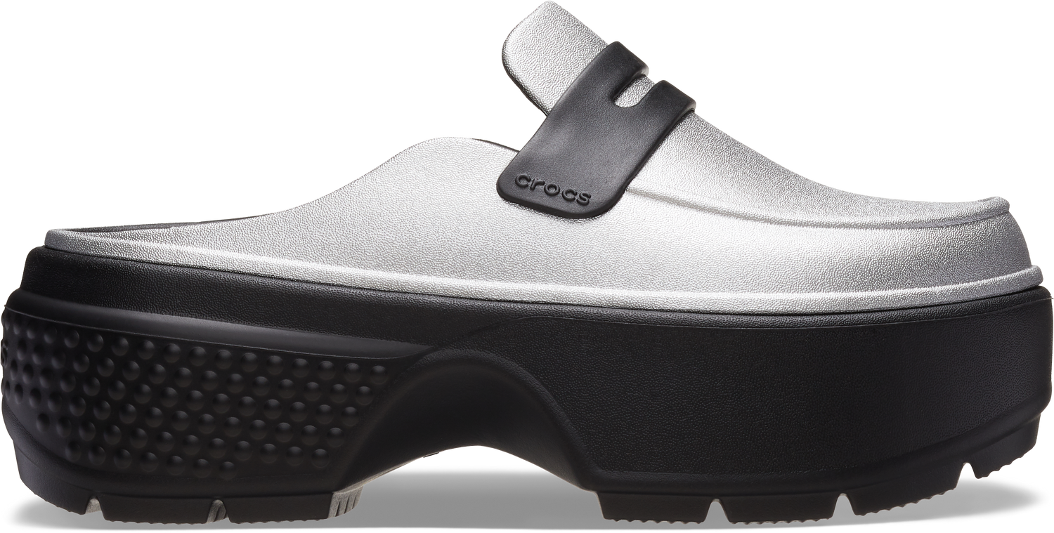 Tread heavily and let the ground know who’s boss. The Stomp Collection features stylish exaggerated soles that are excessively chunky and daring while still feeling light on your feet. With dramatic proportions that elevate its inherent boldness and all of the charms of personalization, the Stomp Collection lets you stomp to your own eye-catching beat. This Metallic Loafer version features a shiny metallic finish on a contoured sidewall upper, which makes it easy to slip on, and also provides maximum support and comfort in the absence of a backstrap.