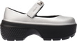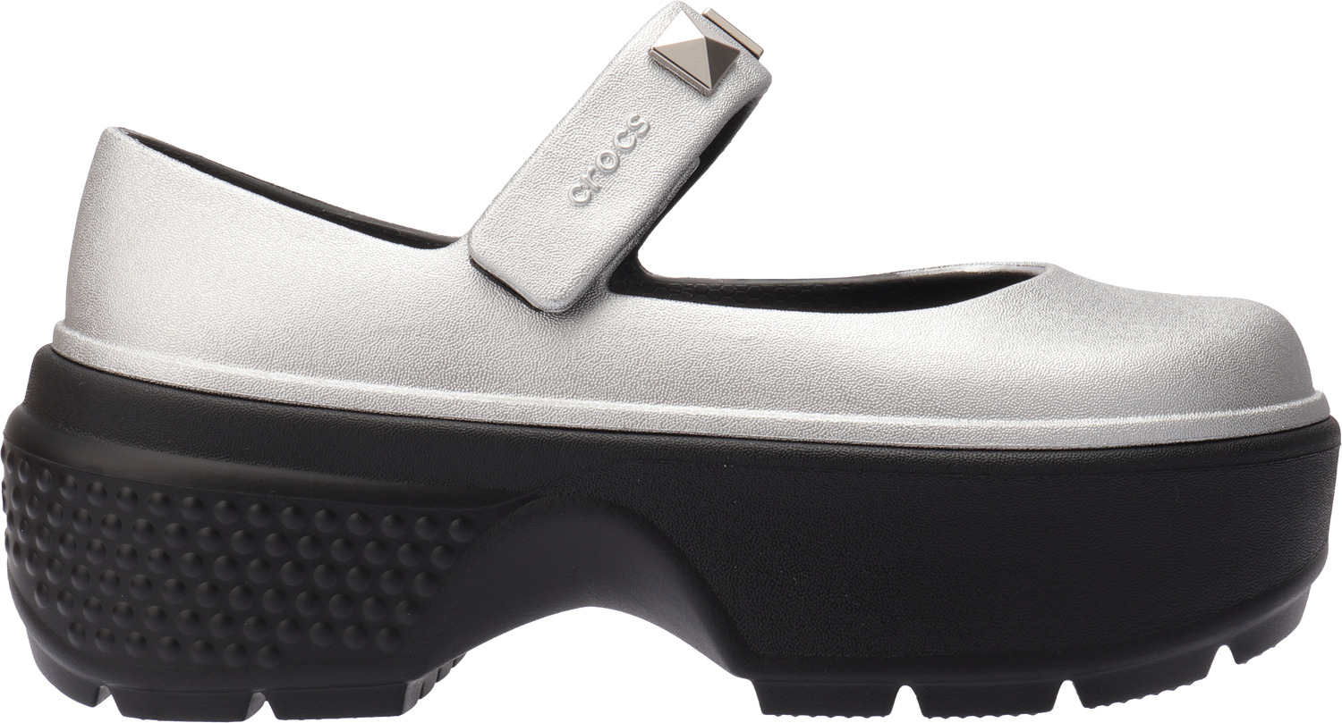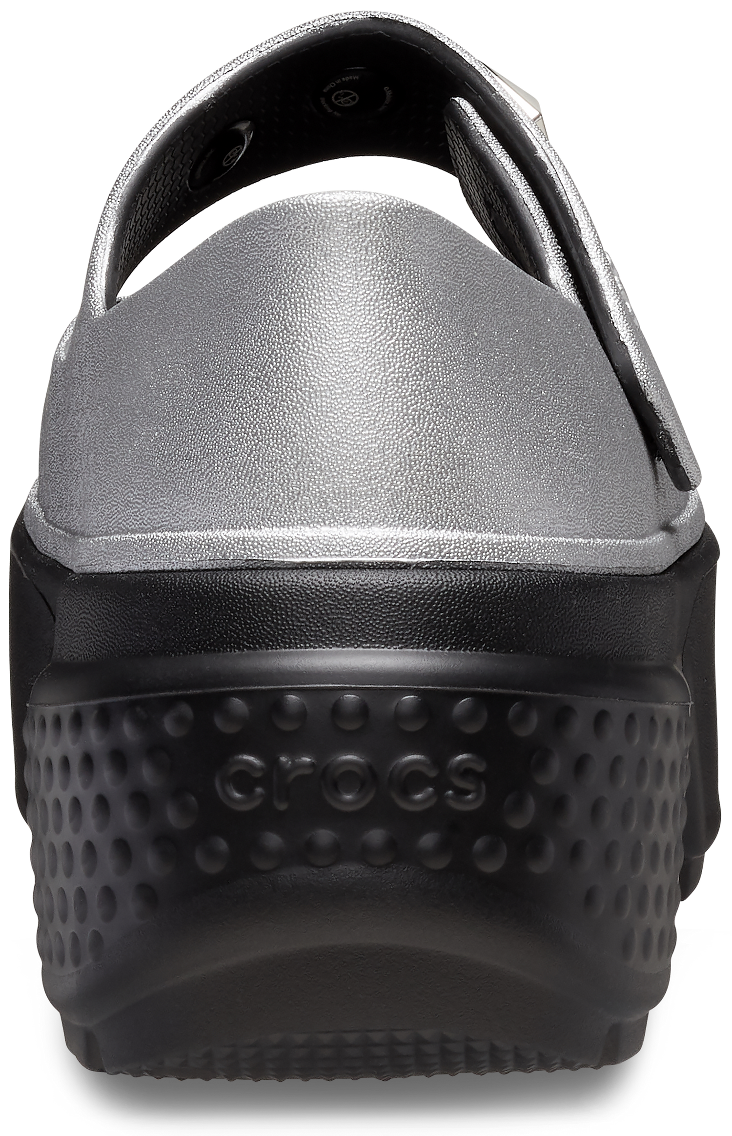 Tread heavily and let the ground know who’s boss. The Stomp Collection features stylish exaggerated soles that are excessively chunky and daring while still feeling light on your feet — and now includes a fashionable Mary Jane version. Leveraging the shape and fit of the Stomp Clog, but with a slimmer, more refined toe shape, the Stomp Mary Jane features the trend-right Mary Jane upper and an adjustable front strap with Jibbitz™ holes. This metallic version also features a shiny metallic finish and removable silver stud Jibbitz™ charms on the strap. You’ll still enjoy the exaggerated lug soles and youthful, chunky height seen across the Stomp Collection. With dramatic proportions that elevate its inherent boldness and all of the charms of personalization, the Stomp Collection lets you stomp to your own eye-catching beat.