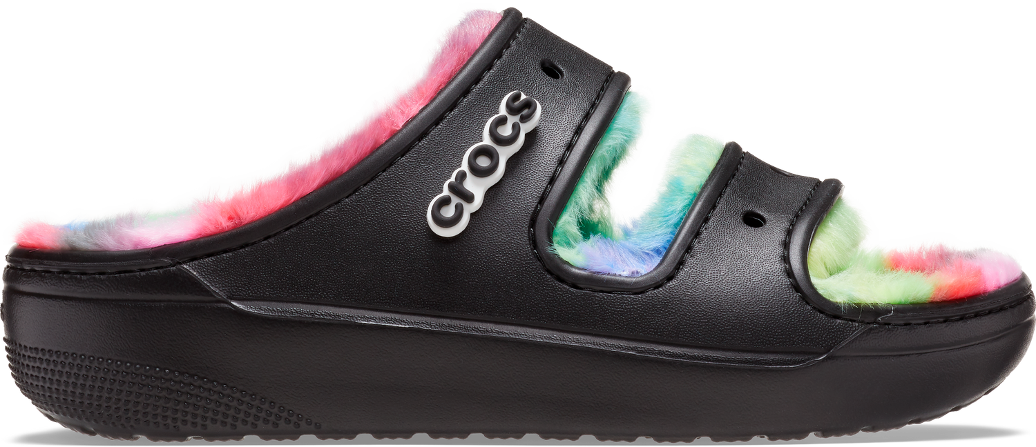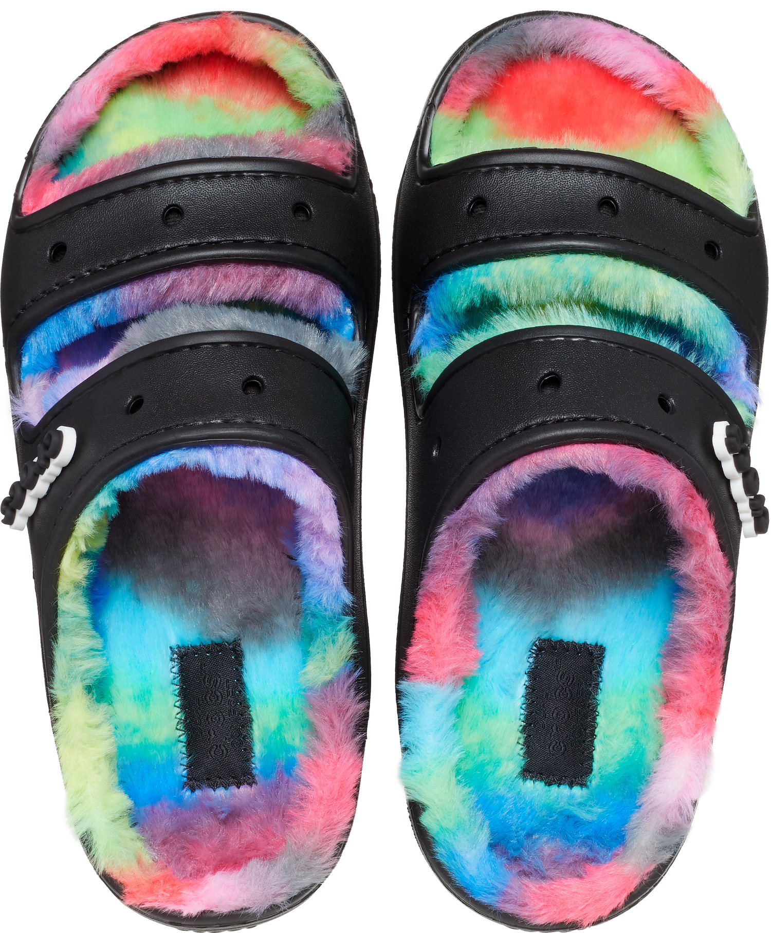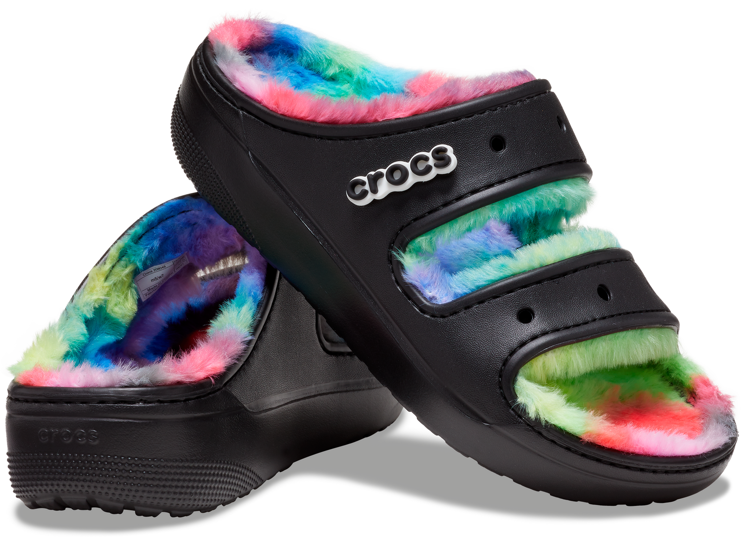 The Classic Cozzzy Sandal comes to life with an engaging spray dye treatment. This colorful two-strap sandal features a soft, fuzzy liner and style-forward heightened outsoles. Seven holes in each sandal allow for maximum personalization with Jibbitz™ charms, while Croslite™ foam construction keeps them light and easy to wear.