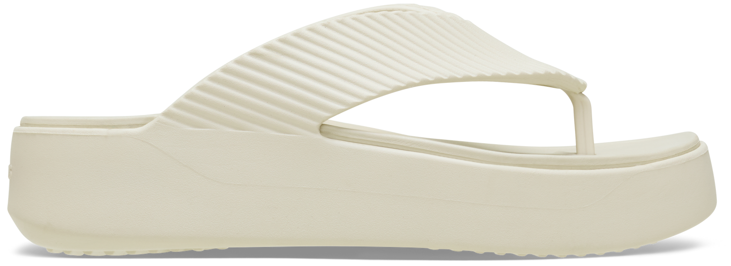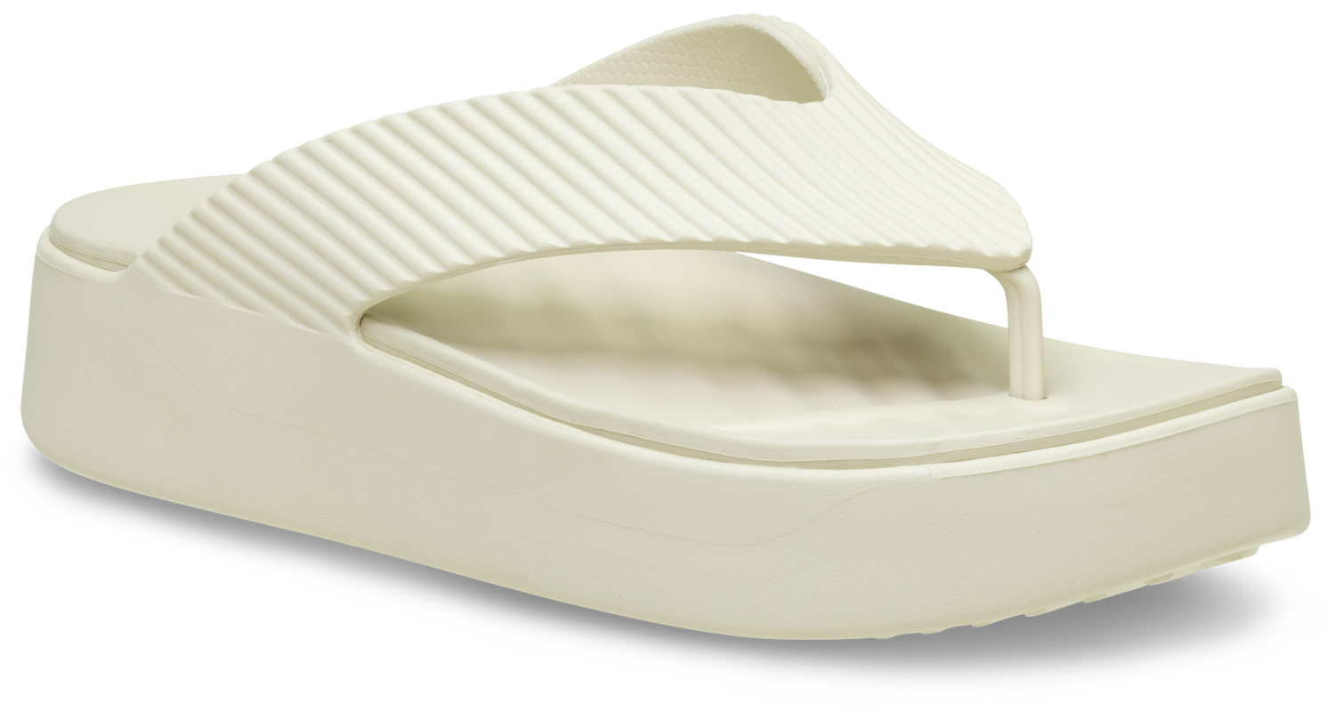 "The Crocs Getaway Collection with new Free Feel Technology™ introduces our most seamless comfort innovation yet. The soft, flexible Free Feel Technology™ upper feels like nothing at all, floating on top of your foot and moving with you without restriction. With a variety of heights and stylish silhouettes, you will have a sandal for every occasion and all your getaways! This version features a platform flip silhouette and resort inspired texture. Once you step in, you will never want to take them off. "