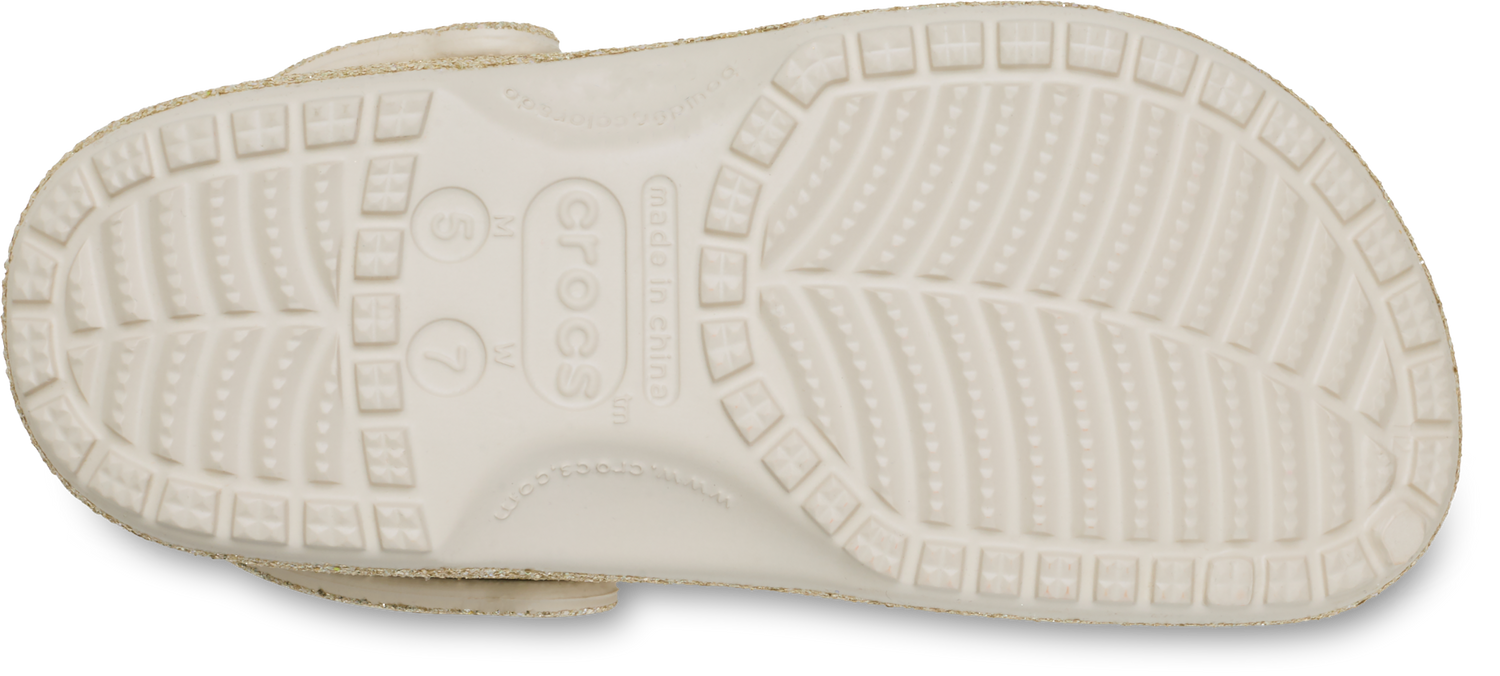 "The iconic clog that started a comfort revolution around the world, now with an adorable all-over glitter treatment! It's the irreverent, go-to comfort shoe that you're sure to fall deeper in love with day after day. Crocs Classic Clogs feature lightweight, cushioned construction and offer an ongoing invitation to be comfortable in your own shoes. Sparkle on! "