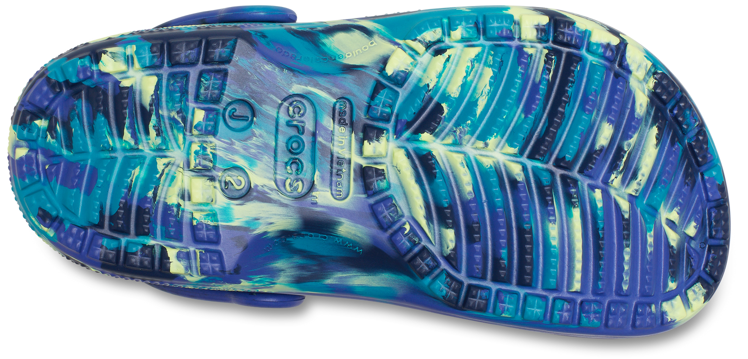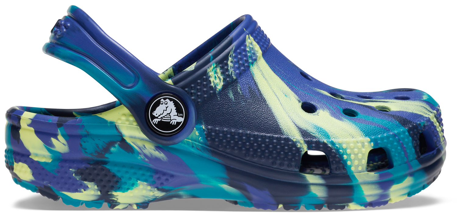 "All-new marbled effects refresh the iconic clog that started a comfort revolution around the world, charmed kids everywhere and made parents fall in love with their easy-to-wear, easy-to-clean design! Our new marbled Croslite™ foam creates a colorful effect that is completely unique. While all marbled shoes have the same wavy look, no two shoes are exactly alike. Crocs Classic Clogs feature lightweight Iconic Crocs Comfort™ and a color for every personality, and remind kids of all ages to go out and play. "