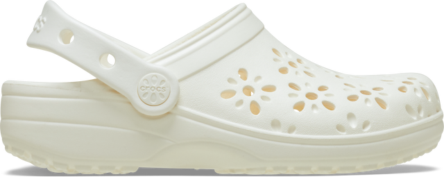 "The Classic Clog with a fresh, feminine twist! This new evolution of our clog features floral-inspired cutouts that provide a joyful, fun look, plus matching floral rivets that unify the design. These still feature the fully-molded lightweight construction and iconic comfort of the original. It’s the irreverent, go-to comfort shoe that you and your little ones love — now with a fun, floral update! "